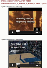 Ensimmäinen näistä oli videoiden käyttö. Stanfordin yliopistolla testattiin, kuinka kolmen minuutin rentouttava video ennen julkista puhetta paransi suoritusta verrattuna videoon, jossa kuvattiin, kuinka stressi on haitallinen asia (Crum ym. 2013 & 2017). Alkuperäiset videot näet tätä kautta: https://mbl.stanford.edu/materials-measures/stress-mindset-manipulation-videos (kuva 3)