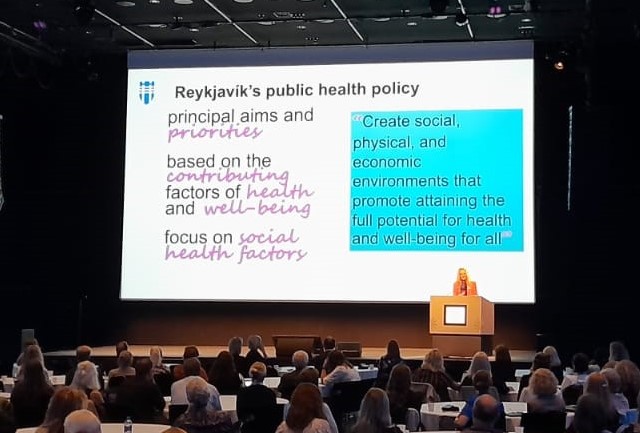Puheen jälkeen ensimmäinen aamupäivä keskittyi pääosin Islannin kansanterveyden edistämisen malliin ja tavoitteisiin, joissa keskiössä olivat tutkimukseen pohjautuvat päätökset, ennaltaehkäisevään hyvinvoinnin tukemiseen keskittyminen ja ympäristö muokkaaminen hyvinvointia tukevien valintojen mahdollistamiseksi. Oli mielenkiintoista kuulla, miten pienessä saarivaltiossa esimerkiksi lasten ja nuorten liikunnan harrastamisen huomattavalla tukemisella ja vanhemmuuden avainroolin korostamisella oli saatu merkittäviä muutoksia aikaiseksi nuorten päihteiden käytön vähentämisessä.