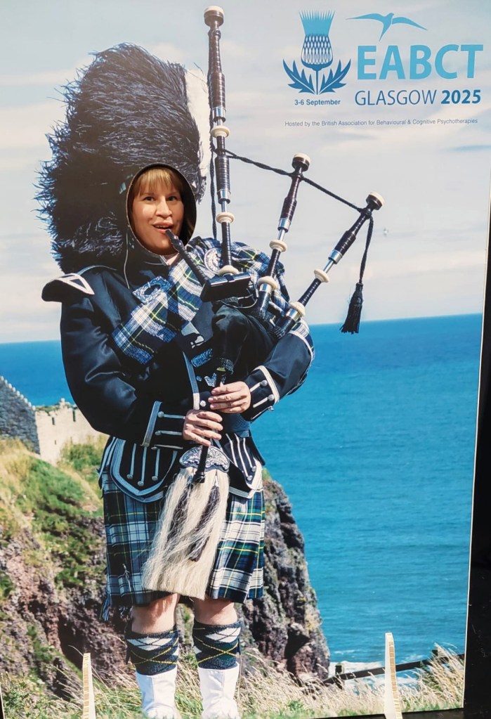 Keräsin rohkeuteni ja päätin lähteä ensimmäistä kertaa ulkomaille koulutukseen! Tajusin ilokseni matkaa varatessa olleeni loppuvaiheen psykologian opiskelijana vastaavassa kongressissa kerran avustajana (EABCT Helsinki 2008). Vaikka workshopit ja luennot vaikuttivat jo silloin mielenkiintoisilta, en kuitenkaan tehnyt mitään konkreettisia tulevaisuuden suunnitelmia sen innoittamana. Tuntui kiinnostavalta muistaa, kuinka silloin nuorena aikuisena oli kovin epäselvää, mitä aion valmistumisen jälkeen tehdä. Ympyrä sulkeutui tämän vuoden syyskuussa, kun suuntani löytäneenä psykologi-psykoterapeuttina olin mukana 55. EABCT-kongressissa Glasgow´ssa Skotlannissa 3.-6.9.2025. (EABCT = The European Association for Behavioural and Cognitive Therapies)