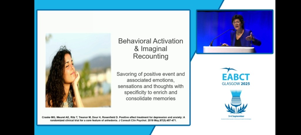 Neljäntenä päivänä iski harmillisesti flunssa, mutta onneksi kaikki osallistujat saivat hyödyntää live-videointeja osasta luentoja. Valitsin katsottavaksi brittiläisen kliinisen psykologian professori Ken Laidlaw´n luennon kognitiivisten ja käyttäytymisterapioiden soveltamisesta yli 65-vuotiaille, länsimaiden nopeimmin suurenevalle ikäryhmälle. Itseäni hämmästytti esiin nostettu 1980-luvun näkökulma, jonka mukaan nämä terapiamuodot eivät sovi vanhemmille ihmisille. Asiaa tutkittiin vasta 2000-luvun puolella tarkemmin ja huomattiin, ettei esteitä käytölle ole. On kuitenkin hyvä ottaa huomioon, että yli 65-vuotiailla ihmisillä on usein sekä masennusta, ahdistusta että muita oireita ja menetyksiä elämässä keskimäärin enemmän kuin nuoremmilla ihmisillä (fyysiset rajoitteet, sairaudet, läheisten kuolemat). Tämän vuoksi transdiagnostinen hoitotapa toimii ja psykologisen joustavuuden lisääminen on keskeistä.